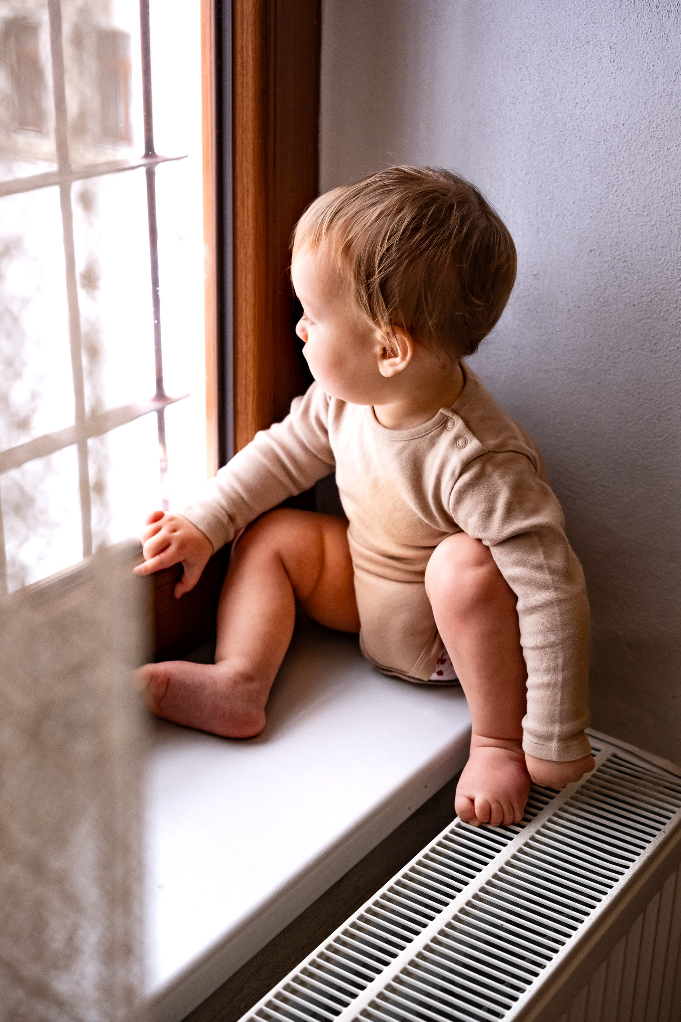 Ateliér je momentálně laděný do zemitých barev, teplých tónů a díky velkým oknům nám dopřává různé světelné prvky. Také mi umožňuje ve velké míře fotit jen s denním světlem, které je pro děti a miminka nejpřirozenější.